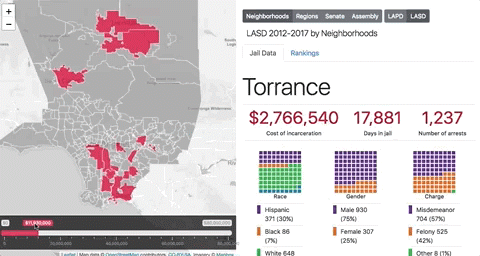 Los Angeles operates the largest jail system on Earth. At a cost of nearly $1 billion annually, more than 17,000 people are caged every night in county jails and city lockups. But not every neighborhood is equally impacted by L.A.’s massive jail system. In fact, L.A.’s nearly billion-dollar jail budget is largely committed to incarcerating many people from just a few neighborhoods. In some communities, local authorities are spending more than one-million dollars annually to lock up residents.